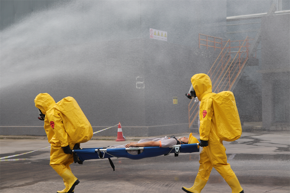 应急救援侦察组和抢险组第一时间迅速组织现场勘察,开辟救援通道,搜救被困人员,发现醛泄露和严重火情时,快速有序展开处置工作。最后,经经开区生态环境局确认,空气中甲醛浓度基本达标,污染、火灾得到控制。至此,本次综合应急练按照预定程序全部演练完毕。