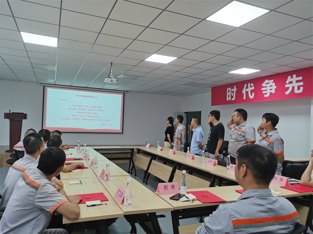 随后,学员代表温春成就近期学习成果和学习感想进行发言,他表示:首先感谢巴中建丰搭建了学习平台,并为大学生制定详细的职业规划;其次阐述了在工作中的“三难”,即将知识转化为实践难、适应工作岗位难、融入集体难;最后,针对以上困难,温春成也表示出强大的决心,愿意持学习之心、自信之心、自强之心和进取之心去积极应对。 铿锵誓言彰显初心,在领誓人的带领下,学员与导师分别进行宣誓,大家坚定不移的目光和掷地有声的誓词表达着为建丰共同奋斗的决心。 活动最后,全体人员就近期工作学习情况进行座谈交流,导师们对学员的疑惑一一解答,并对近期表现进行了综合评价,更加增进了双方的感情。