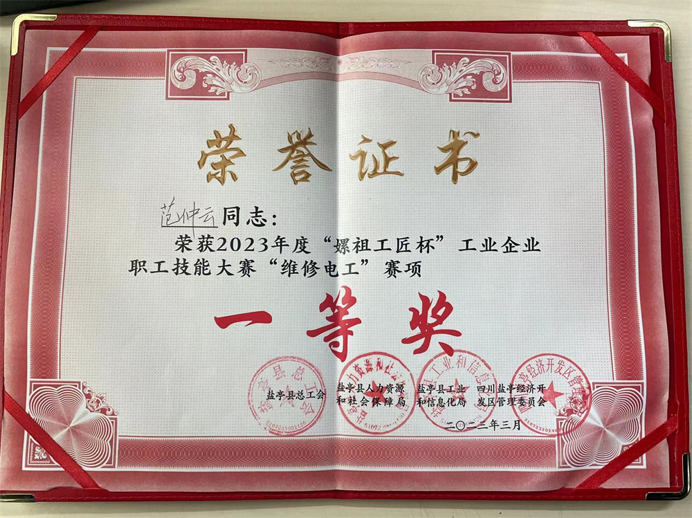 3月18至19日,为深入贯彻落实党的二十大精神,为实施产业强县、开放兴县、文旅活县“三大战略”培养一支执着专注、精益求精、一丝不苟、追求卓越的技能人才队伍,盐亭县总工会、人社局、工信局、经开区联合主办了2023年“嫘祖工匠杯”工业职工技能大赛。 本次大赛共设立数控车工、维修电工、焊接技术、化学检验等四个项目。巴中建丰公司所属四川建丰林业唐倩、李兴林、范仲云三名同志分别代表公司参加了维修电工、化学检验、焊接技术三项比赛。